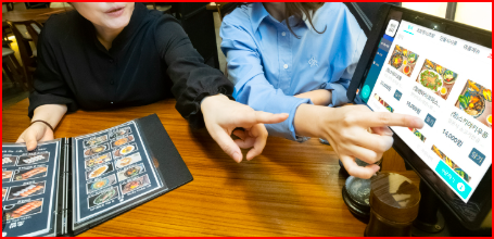 최근에는 태블릿으로 메뉴를 보고 바로 주문하거나, 입구에서 키오스크로